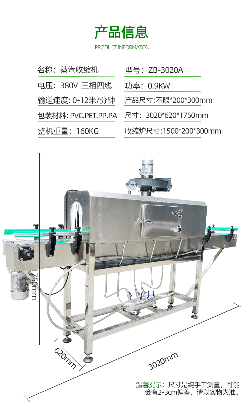 節(jié)能環(huán)保特點(diǎn):通過精確的蒸汽控制和高效的隔熱措施,機(jī)器在保證良好收縮效果的同時(shí),能夠有效節(jié)約能源。與一些傳統(tǒng)的包裝方式相比,蒸汽收縮包裝減少了包裝材料的浪費(fèi),并且蒸汽可以循環(huán)利用,降低了生產(chǎn)成本和對環(huán)境的影響。