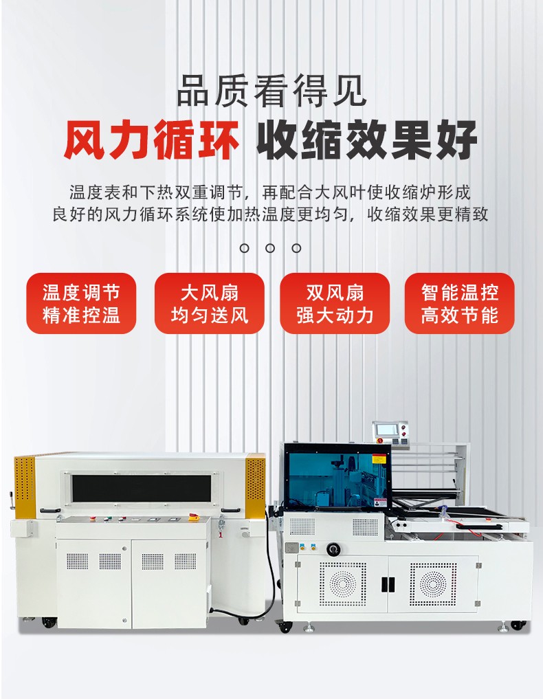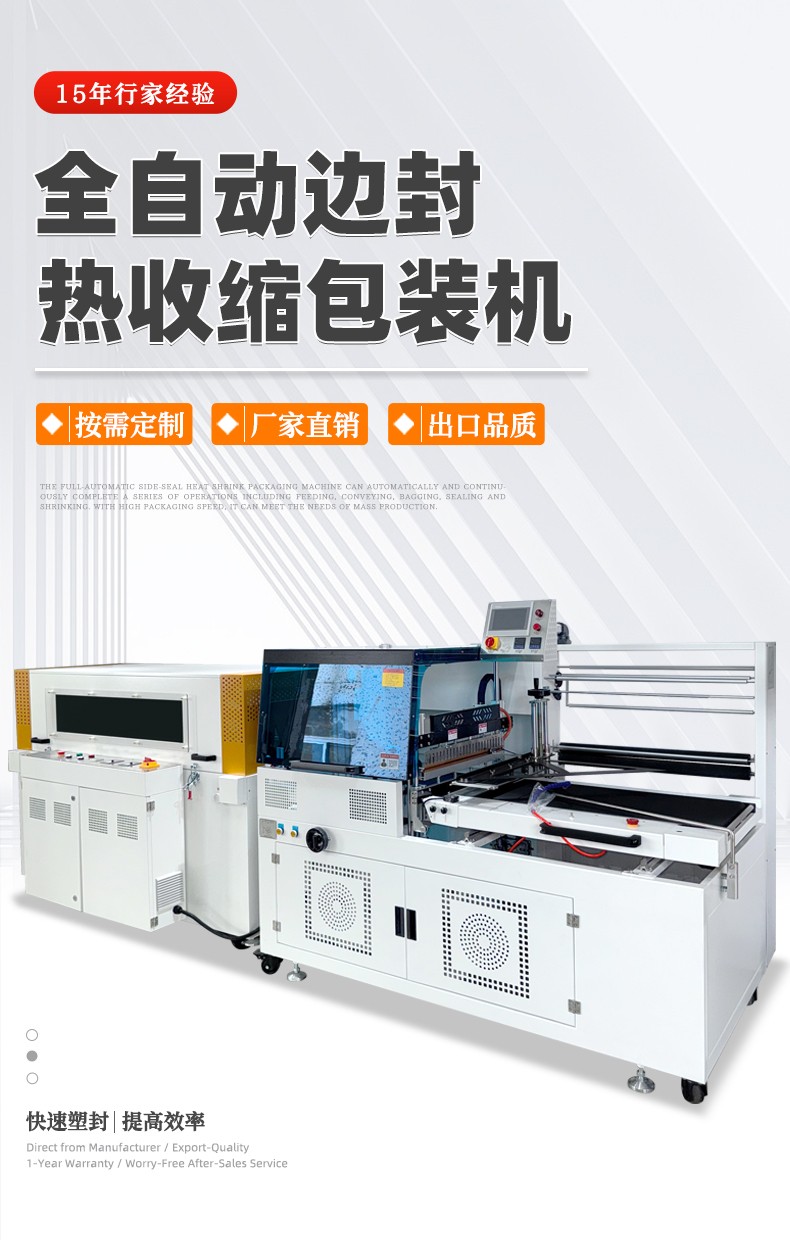 全自動(dòng)邊封熱收縮包裝機(jī)自動(dòng)化程度高,邊封設(shè)計(jì)使產(chǎn)品包裝長(zhǎng)度無(wú)限制