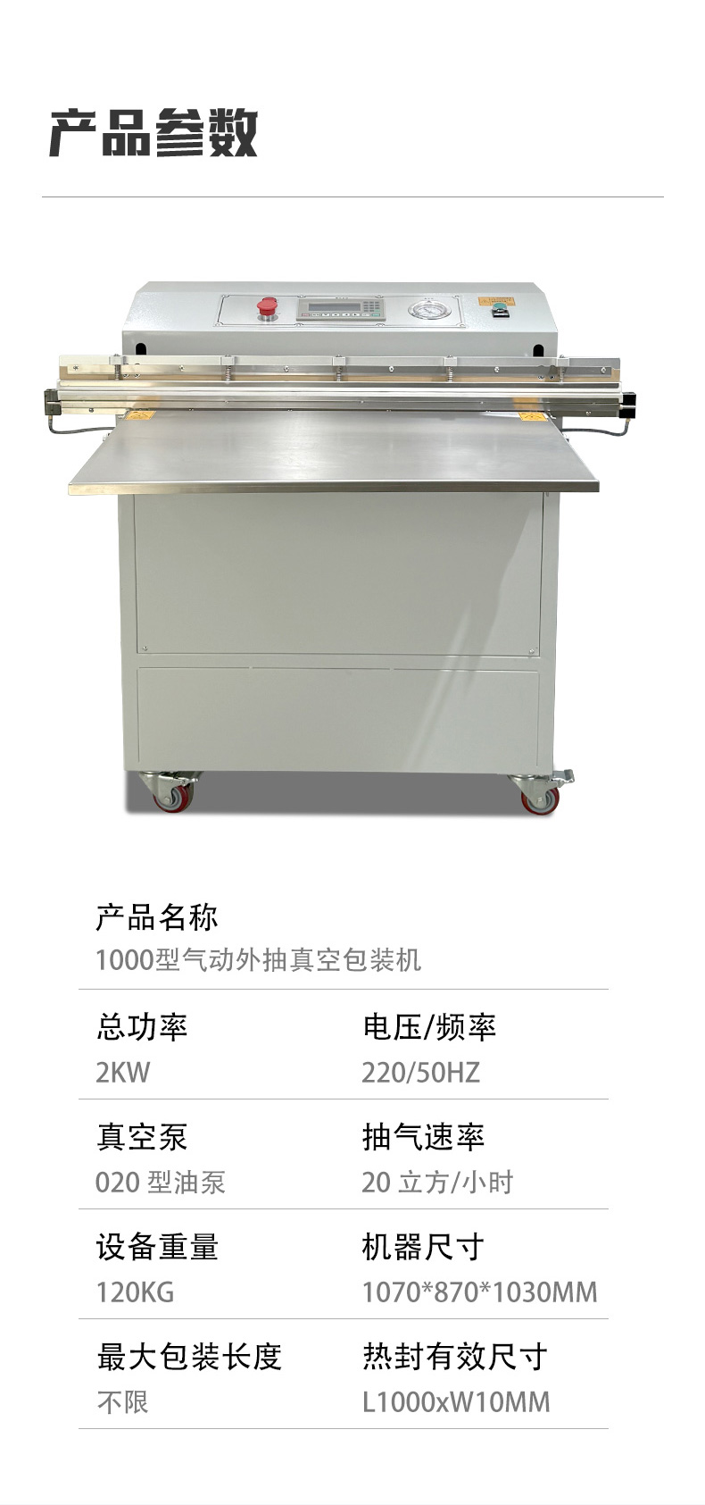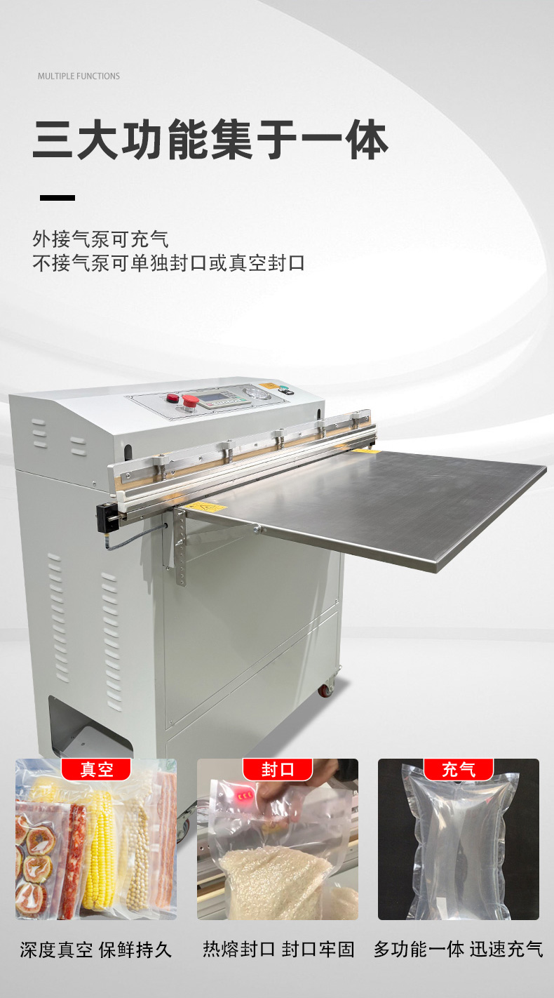 • 適配多場(chǎng)景:支持 PE、PA、鋁箔等多種包裝材料,可切換 “真空封口”“充氣保鮮” 兩種模式,兼顧工業(yè)防銹與食品保鮮需求。