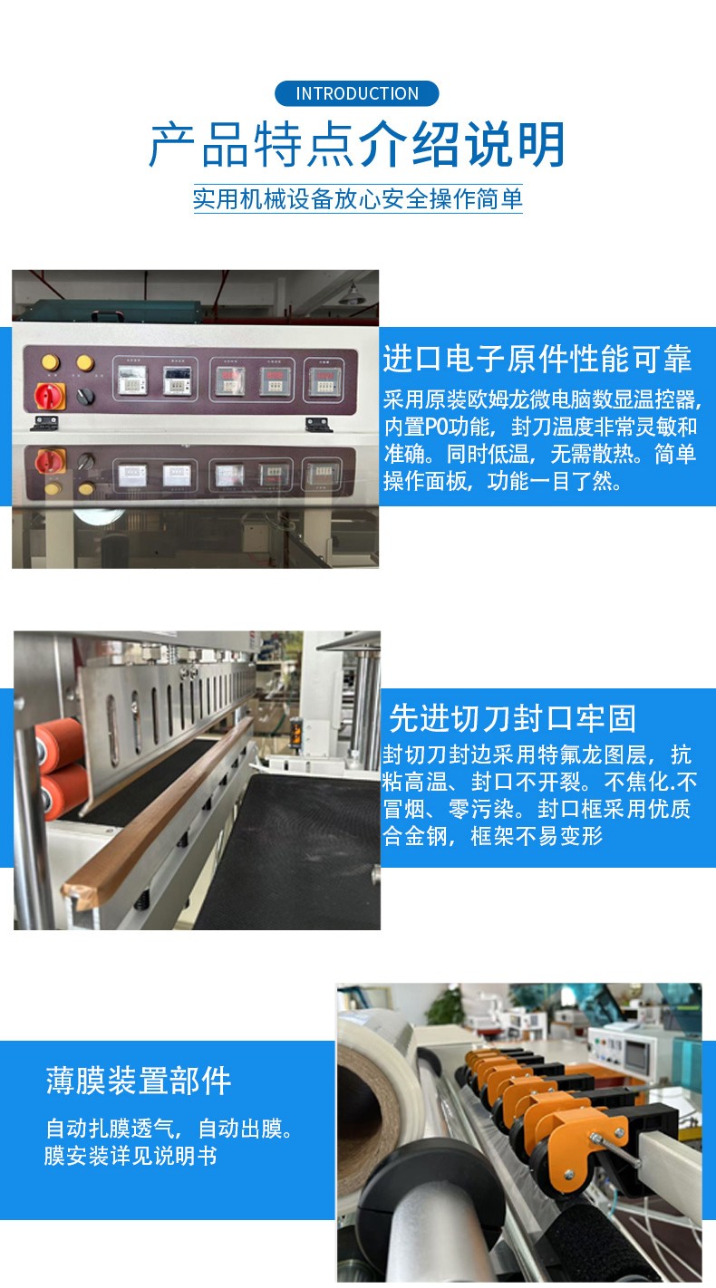 • 當(dāng)薄膜包裹好產(chǎn)品后,邊封裝置開始工作。加熱元件迅速將封刀加熱到預(yù)設(shè)的邊封溫度,這個溫度是根據(jù)薄膜的材質(zhì)和厚度來確定的。例如,對于 PVC 薄膜,邊封溫度通常在 180 - 220℃之間;對于 POF 薄膜,溫度一般在 160 - 200℃左右。